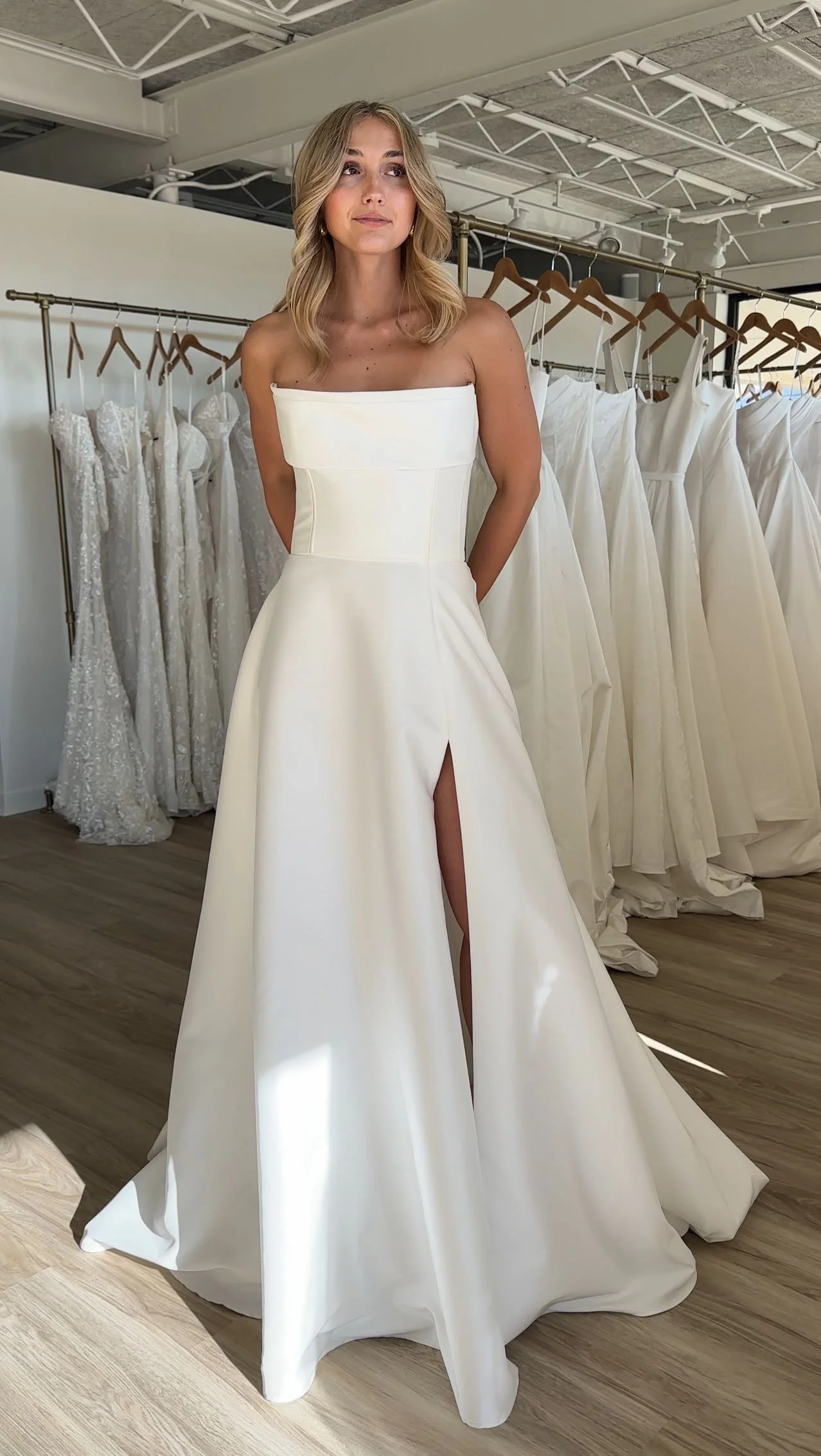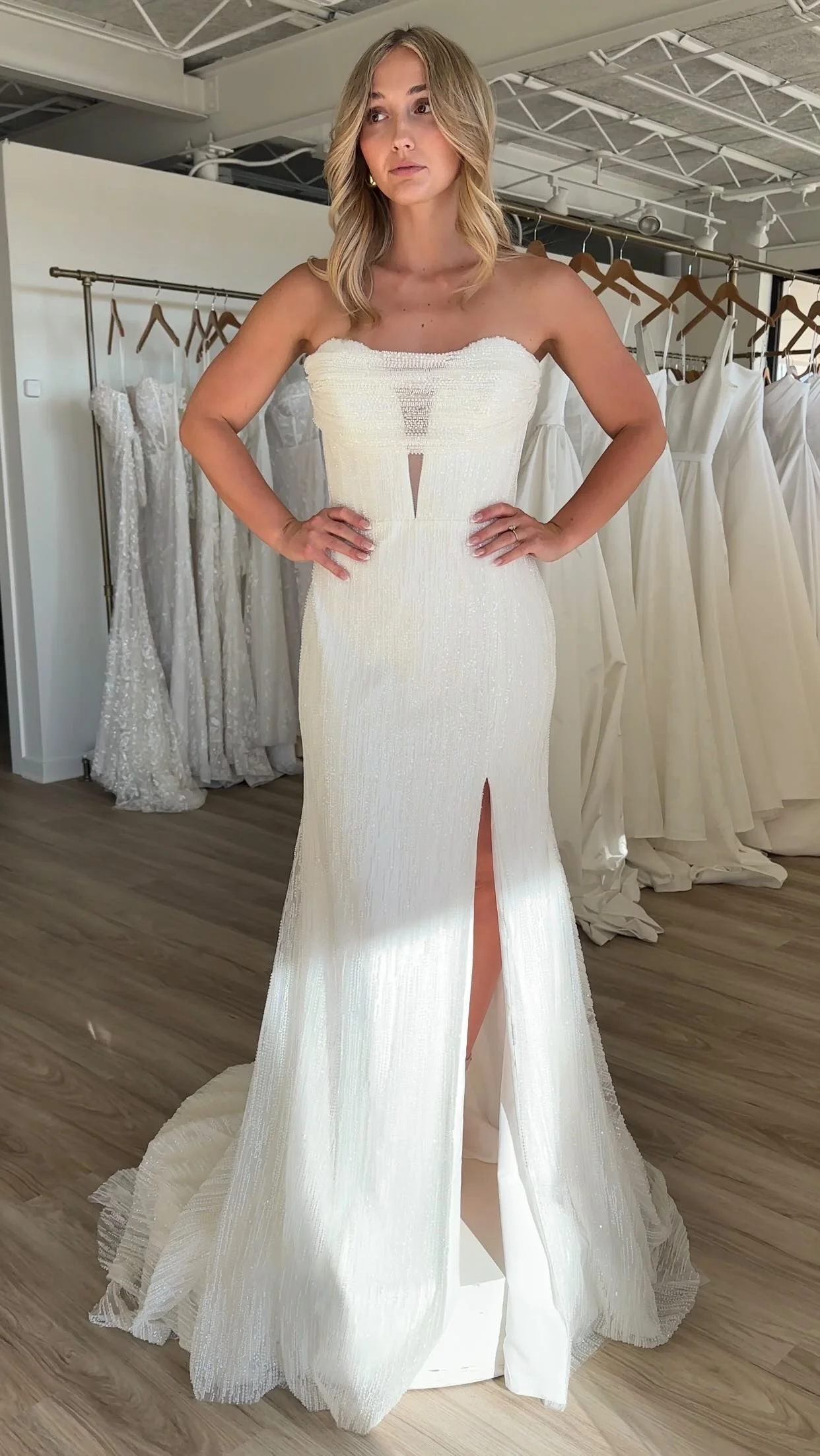Our curated collection features gowns from designers who prioritize thoughtful details, elevated construction, and modern silhouettes. Each piece is chosen with intention—to celebrate you, your story, and the way you want to feel on your wedding day.